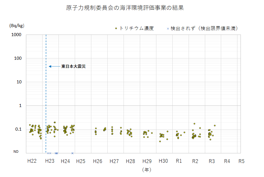 海洋環境における放射能調査及び総合評価事業調査報告書(外部リンク:原子力規制委員会)のデータを基に、水産庁にてグラフを作成しています。