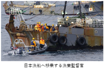 我が国漁業の正常な秩序の維持を図るため、外国漁船の寄港許可に係る事務を行っている。また、IUU漁業(違法、無報告及び無規制の漁業)が海洋生物資源の持続可能な利用にとって大きな脅威となっていることから、IUU漁業に関連した船舶に検査を行っています。